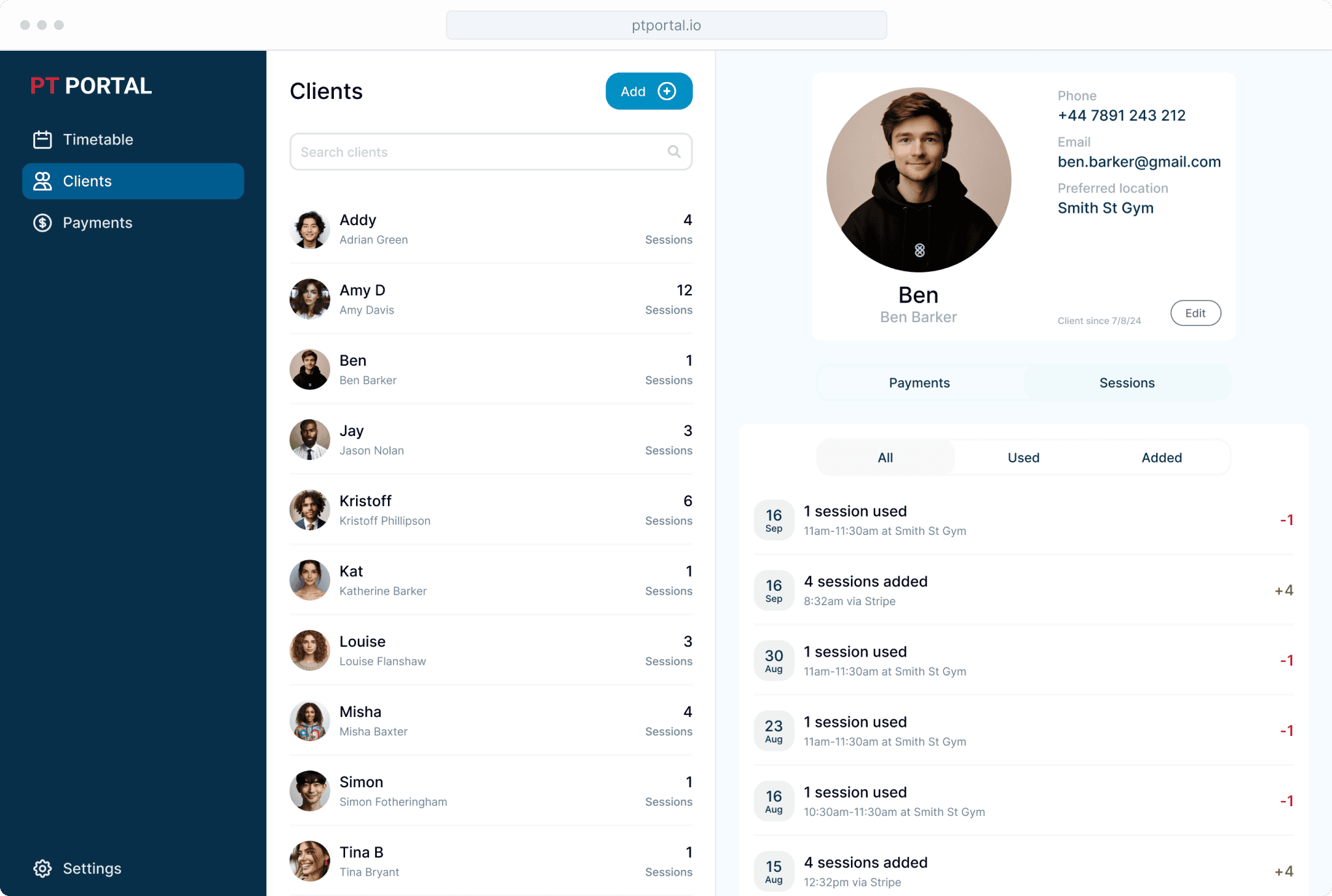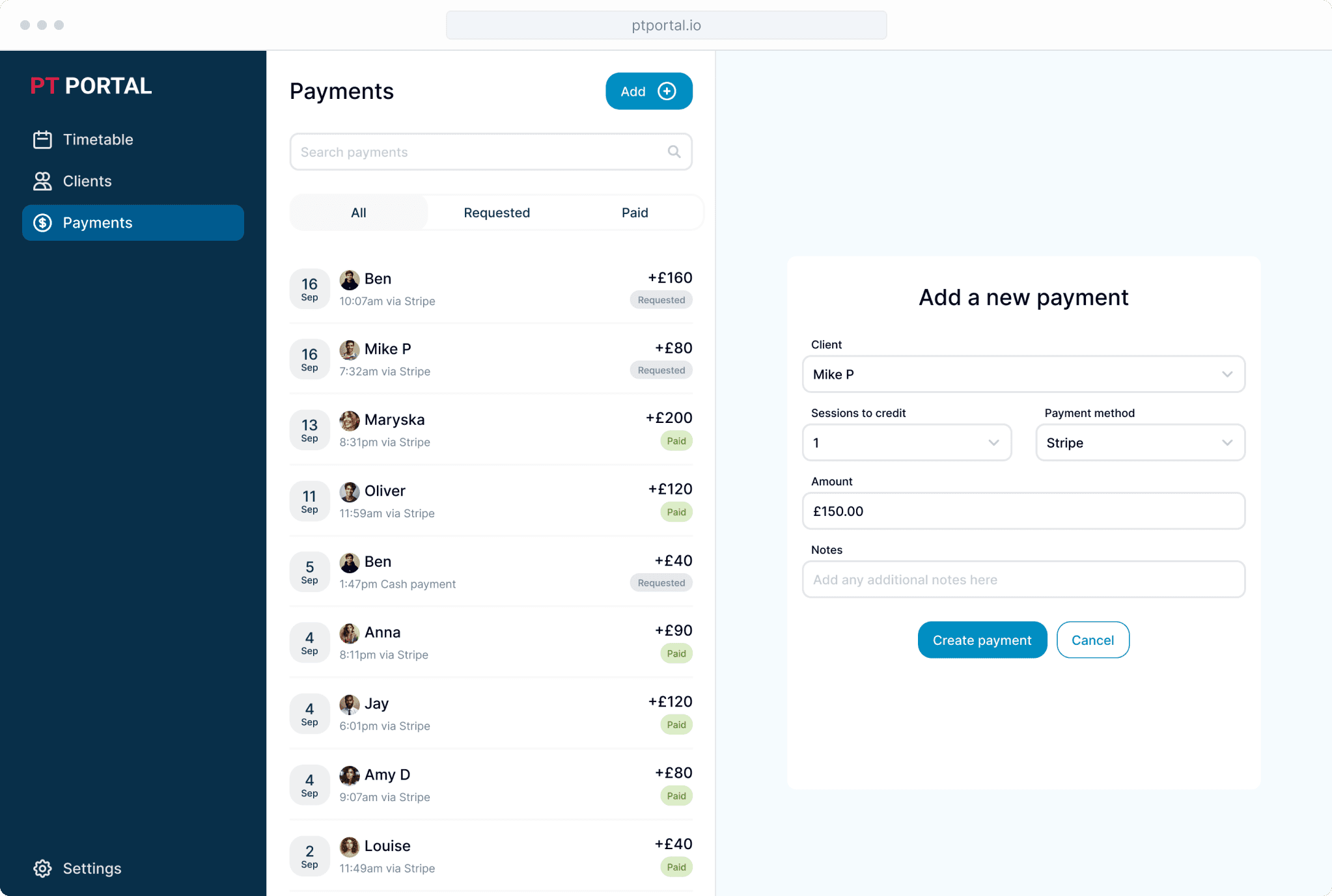 Keeping track of clients and payments can be a pain. PT Portal makes it easy. Start your free online trial today.