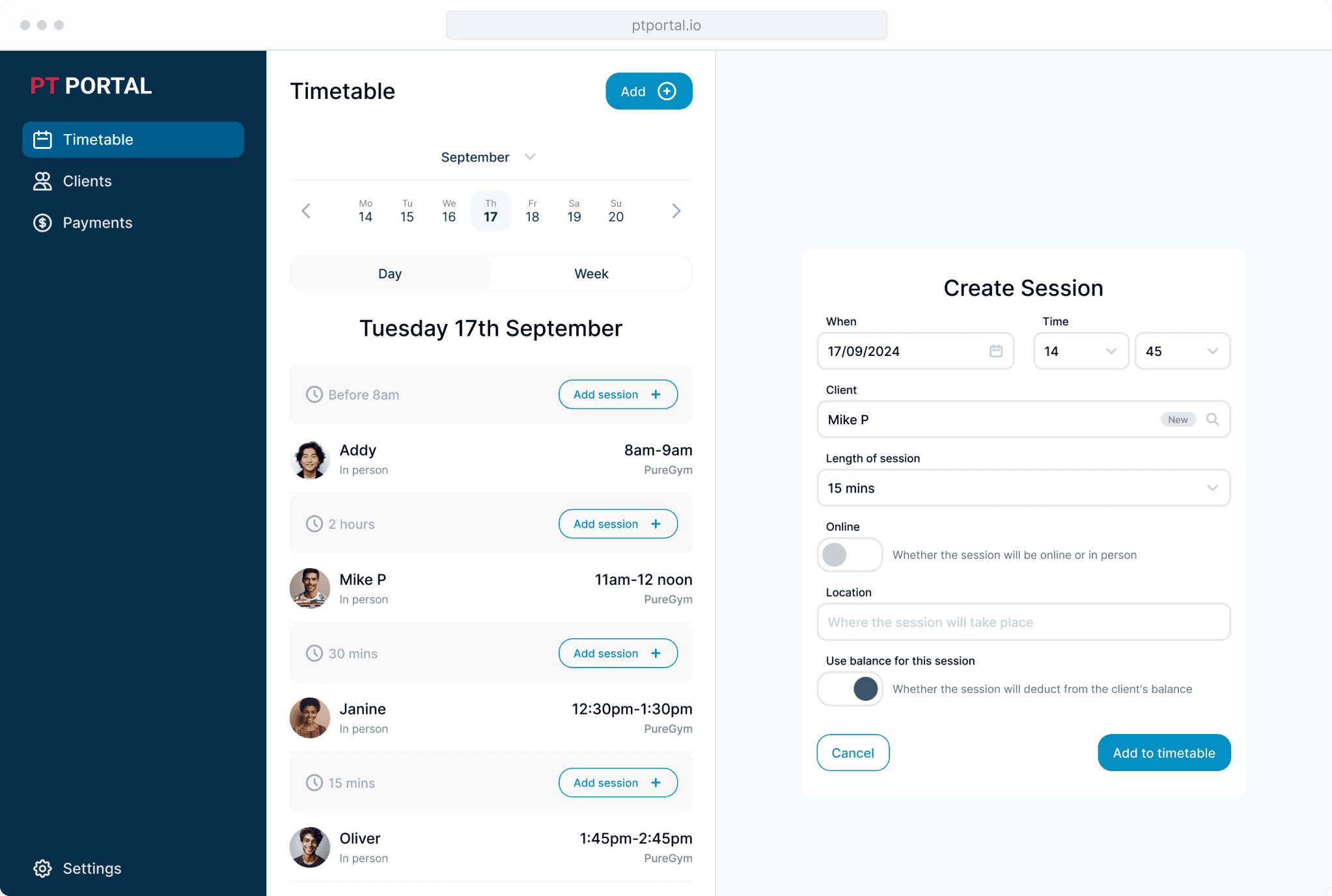 Keeping track of clients and payments can be a pain. PT Portal makes it easy. Start your free online trial today.